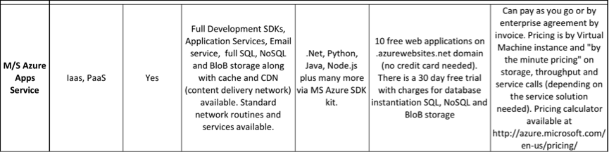 Azure and App Engine compiled with some metrics gives you the following flavour